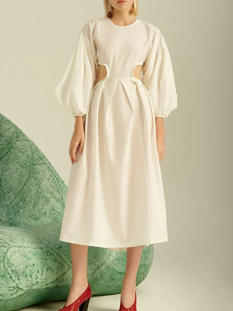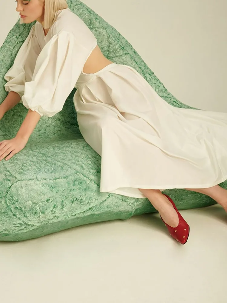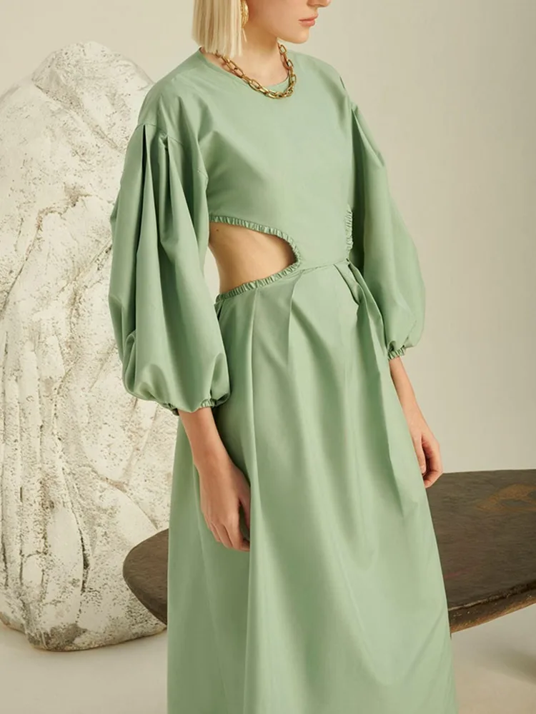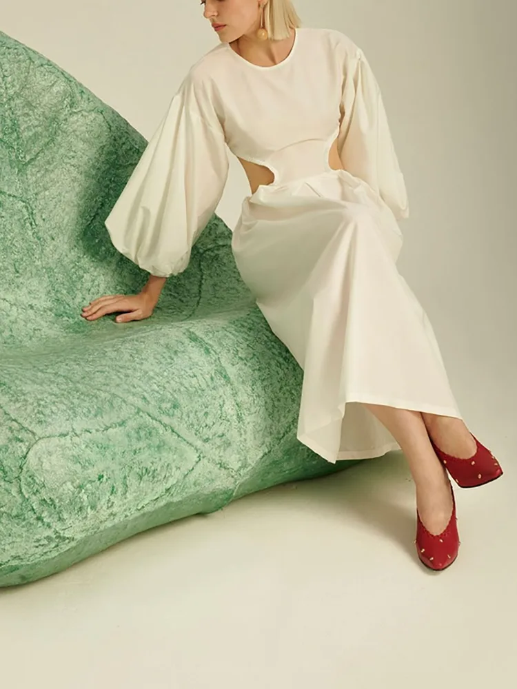 লেডি ম্যাক্সি লম্বা হাতা মার্জিত লিনেন পোষাক ফ্যাশন বৈশিষ্ট্য